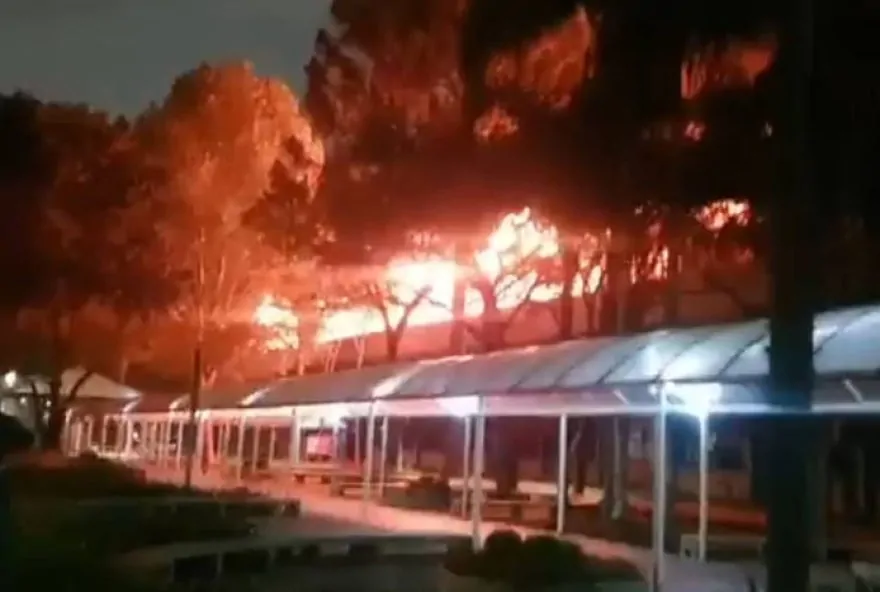 Chamas atingiram espaço de eventos de unidade de ensino que receberia uma cerimônia para alunos do curso de Medicina. Não houve feridos