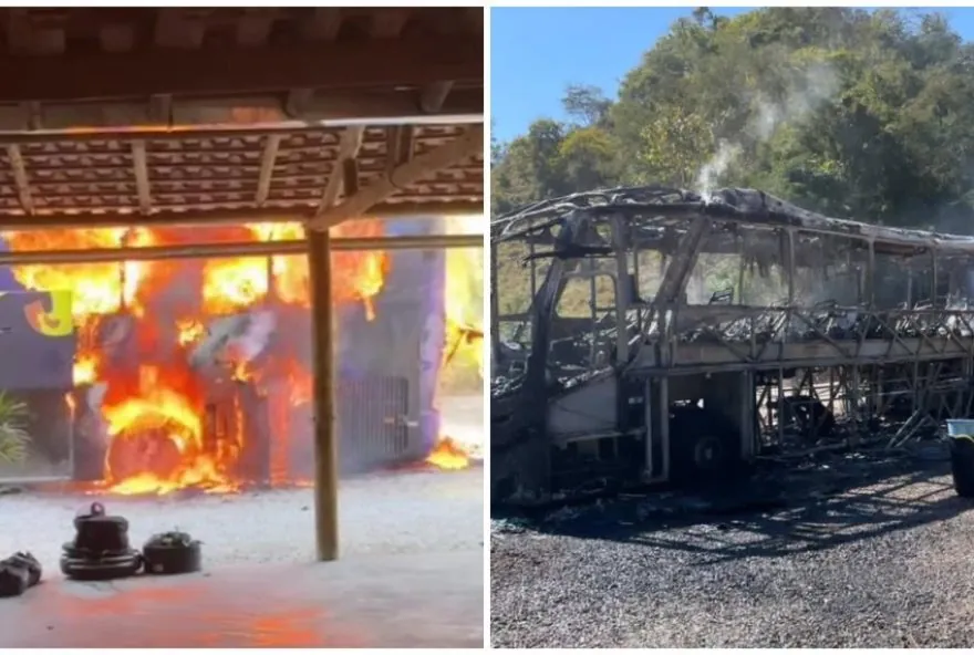 Um ônibus das bandas Bonde do Forró e Djavu foi completamente destruído após um incêndio na tarde deste sábado (26). O veículo estava estacionado em São João Evangelista, no interior de Minas Gerais. Um vídeo divulgado no Instagram do Bonde do Forró registra as chamas.