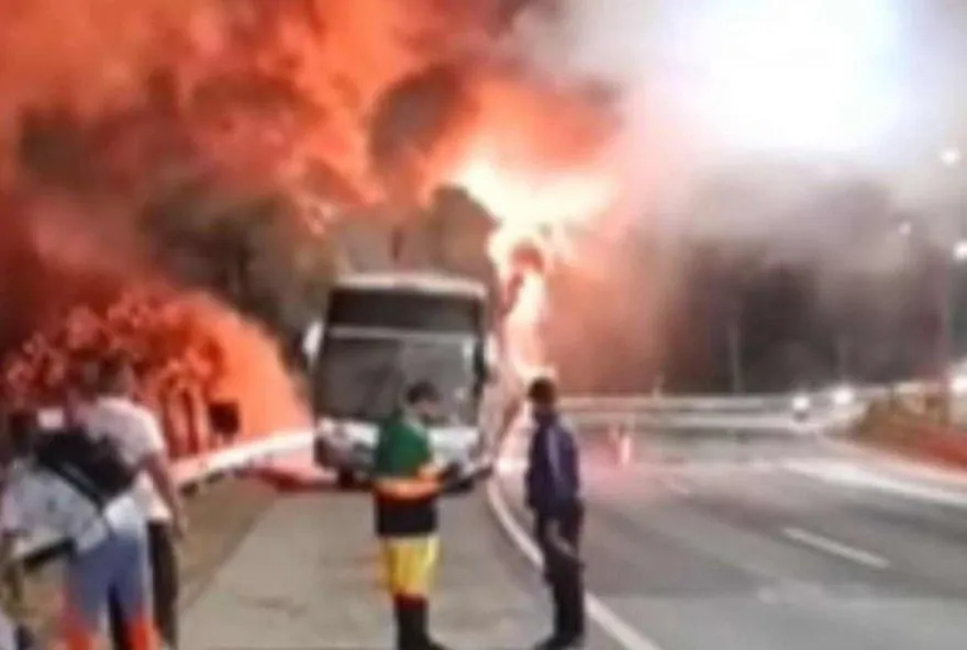 Um ônibus que transportava aproximadamente 40 torcedores do Cruzeiro pegou fogo na BR-040 em Nova Lima (MG), na Região Metropolitana de Belo Horizonte, no último domingo (10/8). Segundo a Polícia Rodoviária Federal (PRF), os torcedores estavam retornando para São João del-Rei após assistir ao jogo do Cruzeiro contra o Santos no Mineirão, quando um problema no motor ocasionou o incêndio, no quilômetro 547 da rodovia. Uma testemunha relatou que o motorista avisou para todos descerem ‘sem apavorar’. Felizmente, não houve feridos no incidente. Os passageiros foram transferidos para outro ônibus que os levou ao destino.