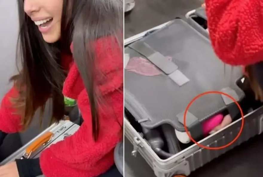 Após abrir a bagagem Amanda descobriu que o zumbido era de um vibrador que acabou ligando sozinho dentro da mala.