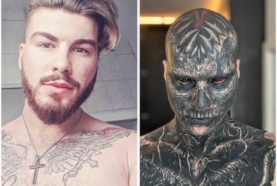 O influenciador digital conhecido como Inkcroalpha viralizou nas redes sociais  ao divulgar recentemente uma transformação radical em seu visual, cobrindo seu corpo praticamente dos pés à cabeça com tatuagens. Conhecido por sua mudança drástica, Inkcroalpha compartilhou no Instagram uma montagem mostrando o ‘antes’ e o ‘depois’ da metamorfose, destacando como sua aparência evoluiu de 2020 para 2024.