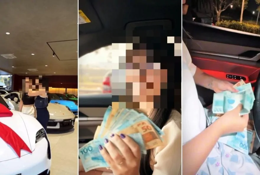 publicações de fotos e vídeos onde mostram a aquisição de carros milionários e