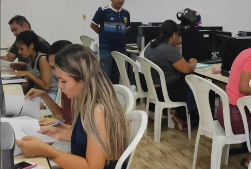 Aula prensecial do curso de Licenciatura em Matemática no polo UAB em Cedro —
