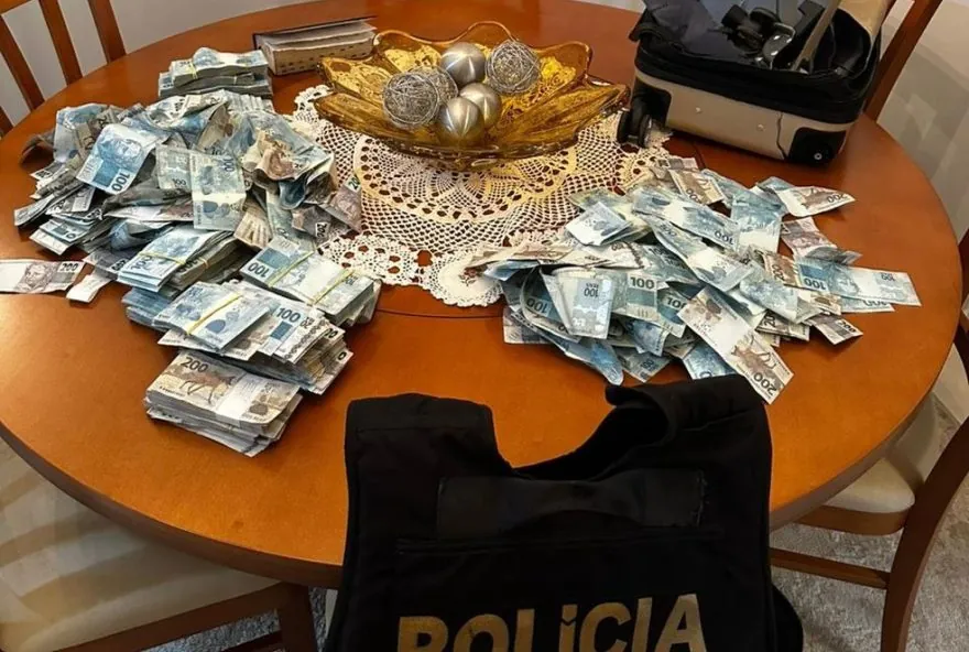 Quantia estava em uma mala que foi arremessada de janela durante a chegada de policiais federais em prédio no Balneário Camboriú. Agentes cumprem mandados de busca e apreensão na 3ª fase da Operação Barco de Papel, que investiga crimes financeiros envolvendo o Rioprevidência e o Banco Master. Nomes dos alvos não foram divulgados.