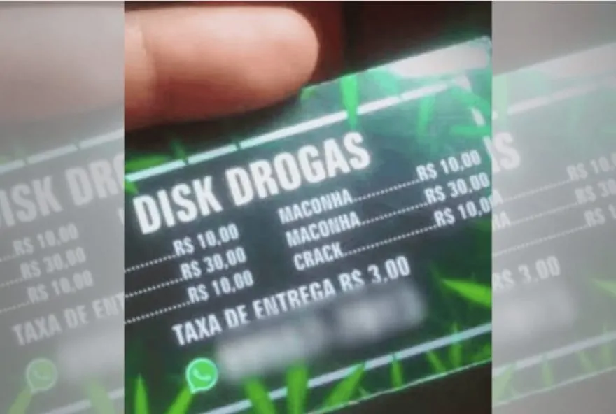 O caso do “disk drogas”, serviço de entrega de substâncias ilícitas que viralizou recentemente nas redes sociais, está sob investigação da Polícia Civil do Rio de Janeiro. Um cartão de divulgação com um menu detalhado das drogas oferecidas e seus respectivos preços chamou a atenção das autoridades. Segundo as postagens, o serviço de entrega está disponível na Rocinha, bairro do Rio de Janeiro. O usuário responsável pela divulgação informa que basta ligar para ter a droga entregue em casa, com preços que variam de R$ 10 a R$ 30 para maconha e R$ 10 para crack.