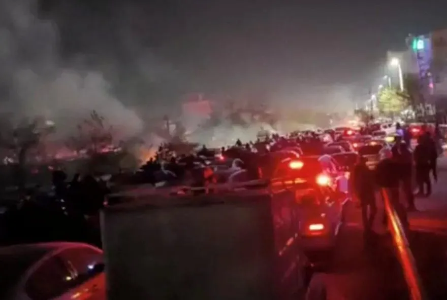Fumaça sobe durante os protestos violentos contra o governo do Irã em Mashhad,