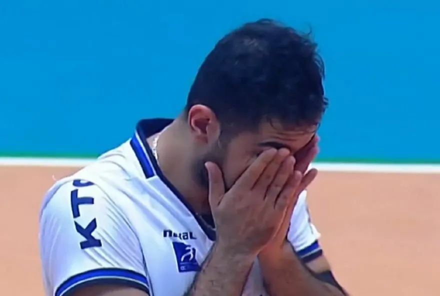 Karimisouchelmaei, levantador do Minas, não conteve as lágrimas. O jogador ficou