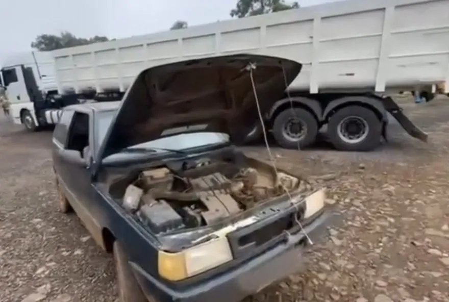 Um carro foi flagrado com diversas irregularidades em Xavantina, localizada no Oeste de Santa Catarina. Segundo informações da Polícia Militar Rodoviária Estadual (PMRv), o veículo da marca Fiat Uno estava com o capô amarrado por uma corda, para-brisa rachado, licenciamento vencido e sem as lanternas traseiras. A situação chamou a atenção dos policiais rodoviários que realizaram a apreensão do automóvel na SC-155. As imagens que mostram o estado precário do carro foram divulgadas pela PMRv, que aproveitou para fazer um alerta sobre a importância da conservação dos veículos.