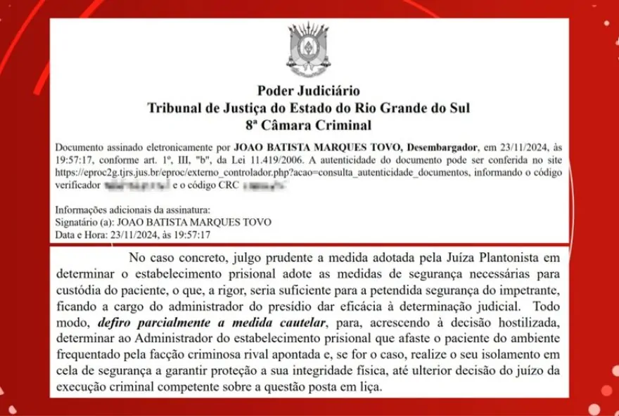 A Justiça do Rio Grande do Sul autorizou o isolamento do preso Jackson Peixoto Rodrigues, conhecido como Nego Jackson, na Penitenciária Estadual de Canoas (Pecan) para preservar sua segurança. No entanto, a decisão foi emitida apenas duas horas após um ataque a tiros que resultou na morte de Jackson, que era o chefe de uma organização criminosa. Em uma carta escrita um dia antes do ocorrido, o detento havia solicitado a transferência para outra cadeia devido ao medo de um ataque de uma organização rival.
