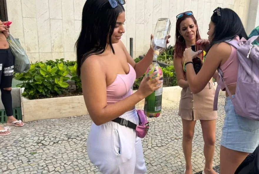 “Eu não sabia. Fomos alertados agora que não pode. Como é caro, vamos colocar na garrafa de plástico. Mas o importante é curtir a festa”, disse a jovem.