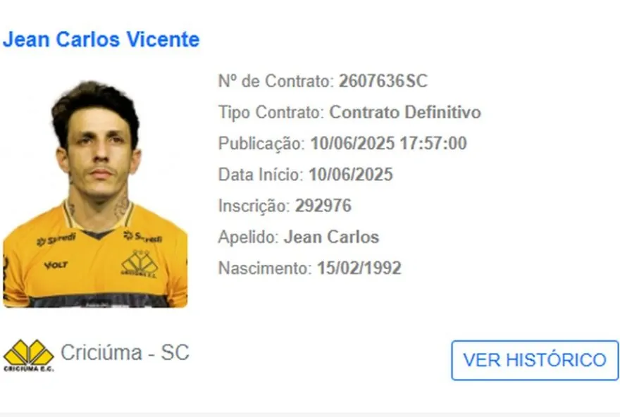 Com a chegada de Jean Carlos, o Criciúma ganha mais opções no setor de meio-campo, reforçando a qualidade técnica da equipe para a disputa de partidas decisivas na segunda divisão do futebol brasileiro. O jogador, que já teve passagens por diferentes clubes e acumula experiência no cenário nacional, chega com a missão de contribuir com seu talento e liderança dentro de campo, buscando ajudar o Tigre a alcançar seus objetivos na temporada.