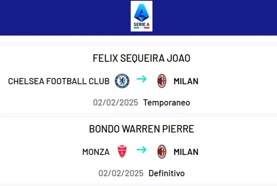O Milan teve uma segunda-feira agitada no mercado de transferências, movimentando jogadores tanto na chegada quanto na saída do clube. Além das contratações de João Félix, Santiago Giménez, Warren Bondo e Riccardo Sottil, o time viu saídas importantes como a do atacante suíço Noah Okafor para o Napoli, Kevin Zeroli para o Monza e Ismaël Bennacer para o Olympique de Marselha, todos por empréstimo. A contratação de João Félix reforça o elenco do Milan que se prepara para enfrentar o Feyenoord nos playoffs da Champions League.