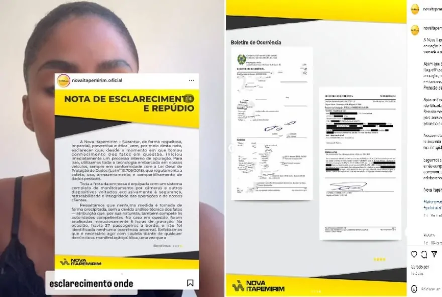 A empresa alega que não constatou ato de importunação e preza pelo acolhimento e dignidade de cada passageiro. A Nova Itapemirim repudia qualquer acusação infundada e manifesta total compromisso com a verdade e respeito aos seus clientes. A estudante recebeu assistência desde o momento da interação com o motorista até a chegada na delegacia.