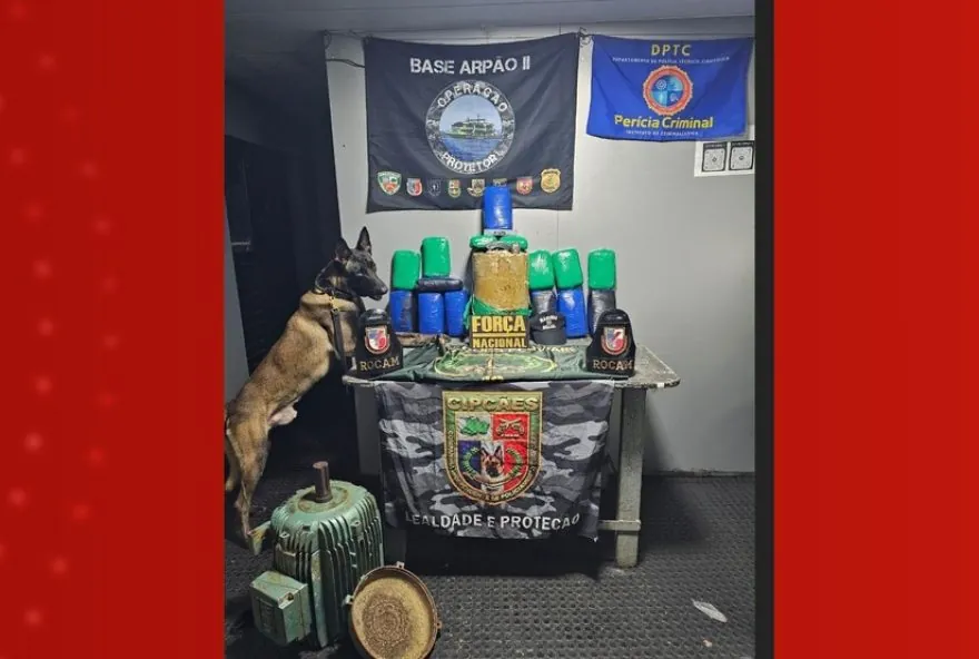 As imagens feitas pelas autoridades mostram o momento em que as caixas de som foram desmontadas. Ao remover um componente da parte traseira, os agentes encontraram substâncias embaladas em plástico azul. Ao todo, foram apreendidos 60 quilos de pasta-base de cocaína. A suspeita, juntamente com o material ilícito, foi encaminhada para a Polícia Civil na Base Arpão 2, uma estrutura fluvial de segurança instalada no Amazonas para combater o crime organizado na região dos rios.