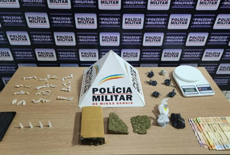 Jovem é preso com dinheiro e drogas em Caratinga. De acordo com as informações divulgadas pela Polícia Militar, um suspeito de 18 anos foi capturado após tentar fugir por uma mata localizada no bairro Nossa Senhora Aparecida, em Caratinga. A ação ocorreu no último sábado (23) e resultou na apreensão de diversos materiais ilícitos.