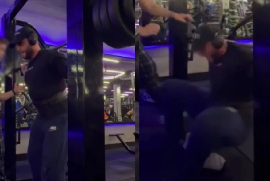 [RMC]. Momento foi filmado por Luis, que estava gravando o exercício que fazia no equipamento, chamado smith. Assista acima.