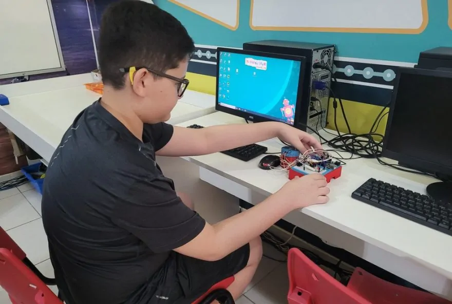 Davi Bonifácio Guimarães Sanches Ruiz, de 12 anos, é um dos criadores do “Resfrecadinho”, um sistema de extintores inteligentes instalados na floresta para combater incêndios. O projeto foi idealizado para detectar focos de calor, enviar alertas para autoridades e acionar alarmes nas árvores para conter o avanço das chamas.