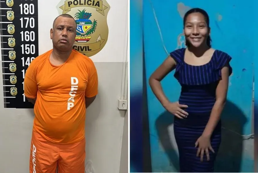 Janildo da Silva Magalhães (lado esquerdo) foi indiciado pela morte e estupro da estudante Amélia Vitória (lado direito), de 14 anos, em Aparecida de Goiânia, Goiás — Foto: Divulgação/Polícia Civil