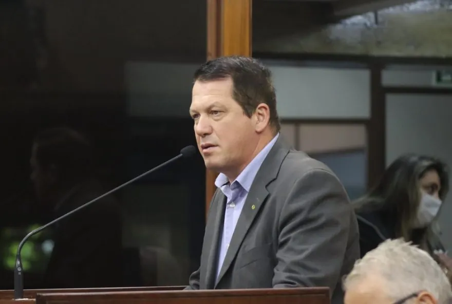 O vereador Sandro Fantinel em sessão na Câmara de Vereadores de Caxias do Sul em maio de 2022 – Foto: Manuelli Boschetti/Divulgação
