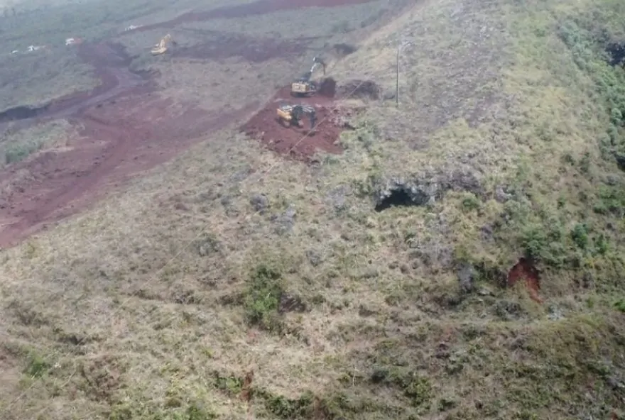 Imagens obtidas por drone flagraram uma retroescavadeira avançando em direção à gruta. Conforme especialistas, a aparência observada na cavidade divergia significativamente das descrições constantes no estudo que embasou o licenciamento da empresa.