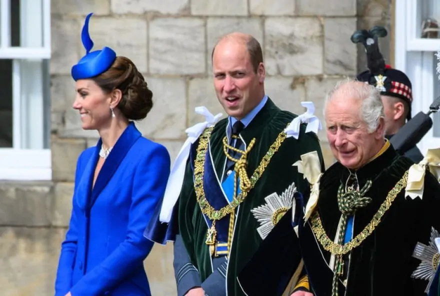 entre o marido, o príncipe William, e o sogro, o rei Charles III.