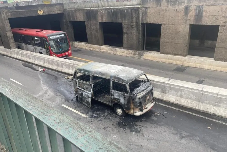 Uma Kombi pegou fogo no Mergulhão da Avenida Barão do Rio Branco, em Juiz de Fora, deixando o trânsito interditado no sentido Centro na manhã desta terça-feira (24). Felizmente, o motorista e outros dois passageiros conseguiram escapar a tempo e não sofreram ferimentos. A Avenida Rio Branco foi liberada ainda pela manhã, após a conclusão dos trabalhos do Corpo de Bombeiros.