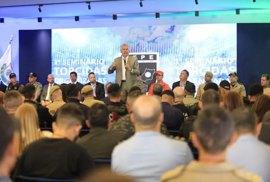O governador Ronaldo Caiado prestigiou o seminário e ressaltou que o bom desempenho da segurança pública tem assegurado ao estado a atração de grandes eventos.