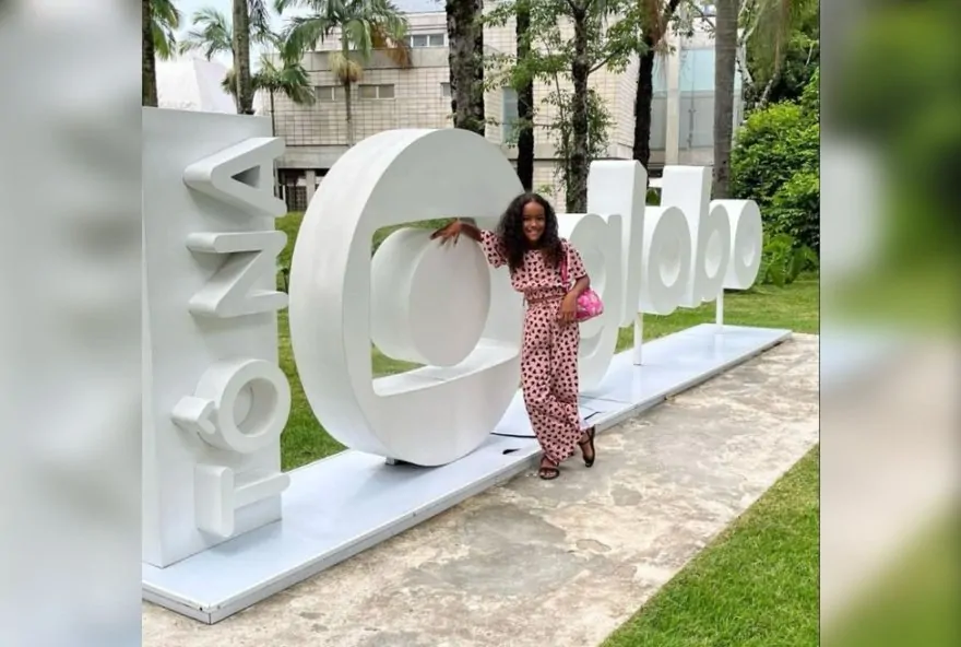 Um dos momentos mais aguardados por Laura foi o encontro com a atriz Bella Campos, que interpreta a versão adulta da personagem Maria de Fátima. A menina conta que já acompanhava o trabalho de Bella e que foi uma grande emoção conhecer a atriz pessoalmente.