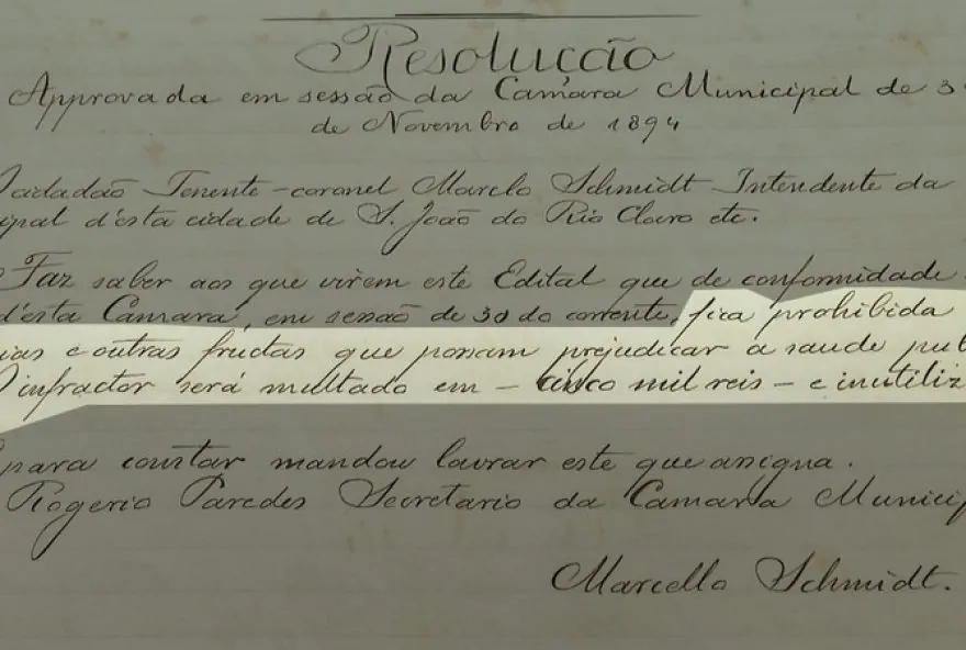 A lei acabou de completar 130 anos. É de 30 de novembro de 1894 e consta do livro do tombo número 1 – o primeiro da cidade e que está no Arquivo Público e Histórico de Rio Claro.