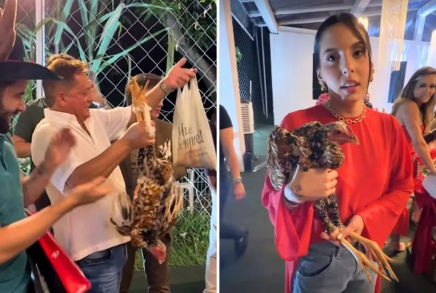 Leonardo ganhou uma galinha e um litro de pequi em um divertido Natal ao lado de Zé Felipe, Ana Castela e os netos. Os convidados se surpreenderam com o presente inusitado, porém, o cantor pareceu se divertir com a situação. Em vídeos compartilhados, as netas Maria Alice e Maria Flor aparecem acariciando a galinha, demonstrando carinho pelo novo animal de estimação da família.