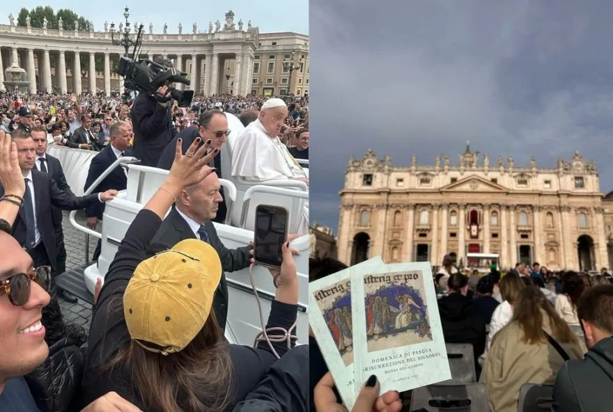 Apesar de não ter celebrado a missa, o Papa Francisco apareceu para dar a bênção aos fiéis e circulou pela Praça de São Pedro dentro do papamóvel, arrancando aplausos e vivas da multidão. O pontífice se recuperava de uma pneumonia dupla que o deixou 38 dias internado.