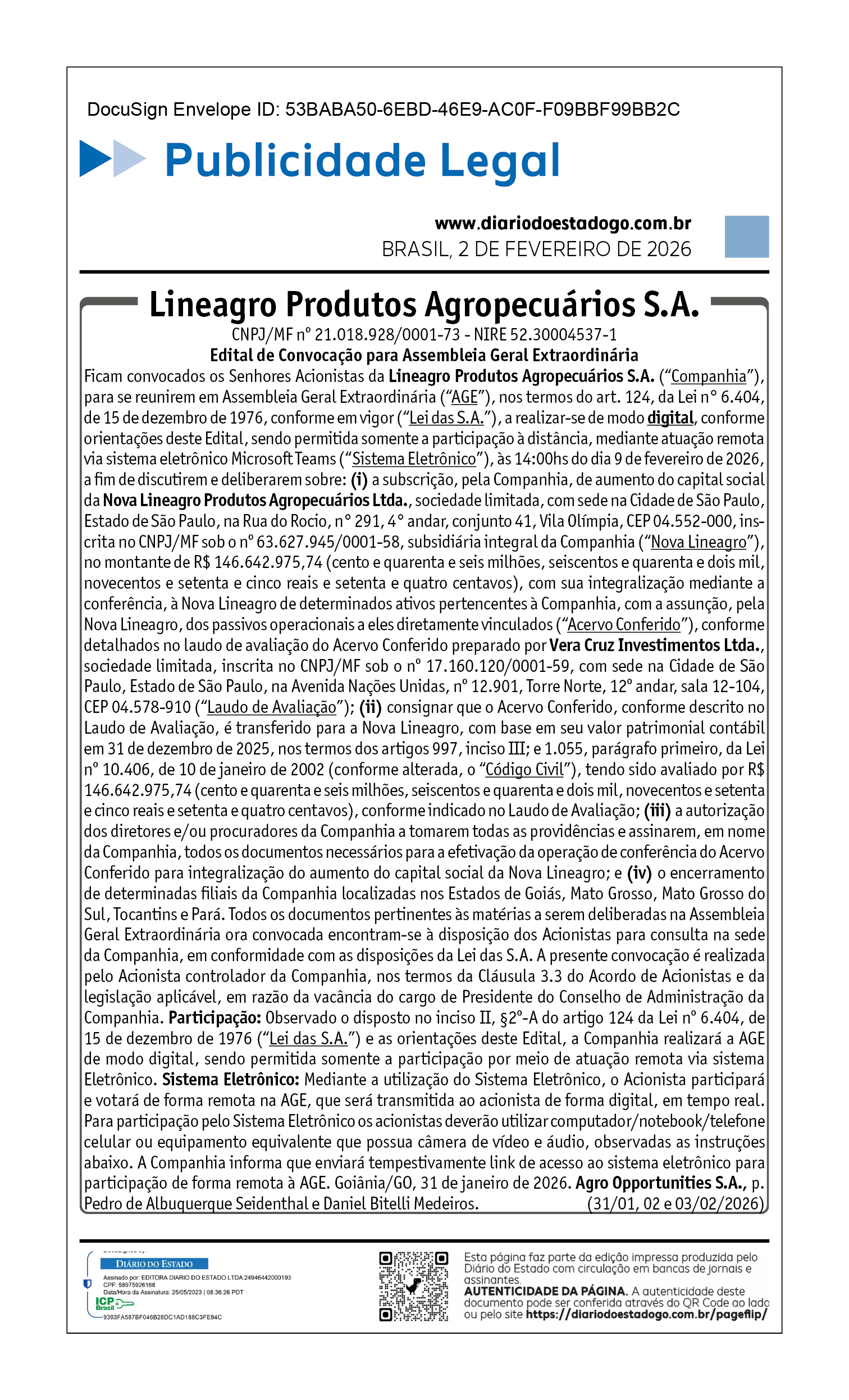 Lineagro Produtos Agropecuários S.A • 21.018.928/0001-73