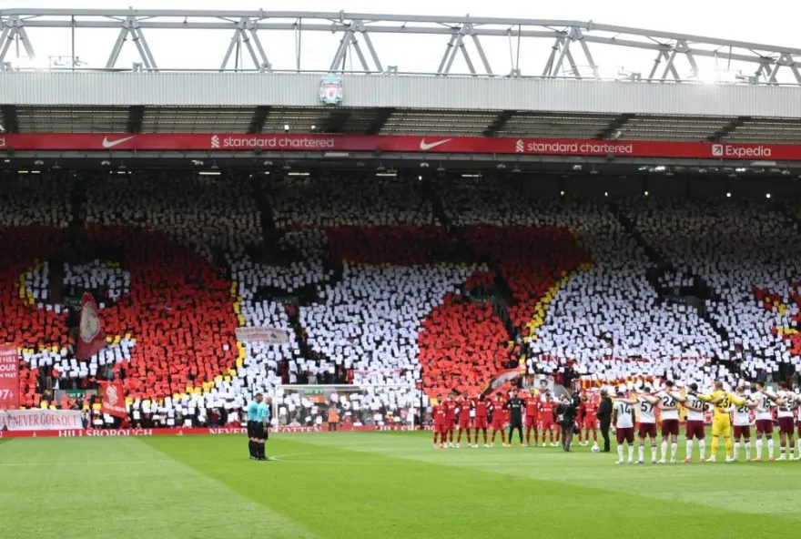 Em memória às vítimas do caso, neste domingo (13), antes da bola rolar na partida entre Liverpool e West Ham pela Premier League, homenagens foram realizadas no Anfield.