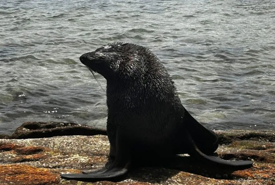 O mamífero foi visto em Bombinhas na terça-feira (26). Trata-se de um lobo-marinho-sul-americano, espécie de nome científico Arctocephalus australis.