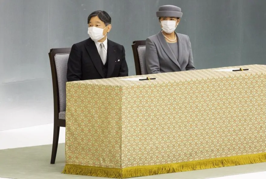 Imperador japonês, Naruhito, e a imperatriz Masako durante cerimônia em 2022. — Foto: Yuichi Yamazaki/Pool Photo via AP