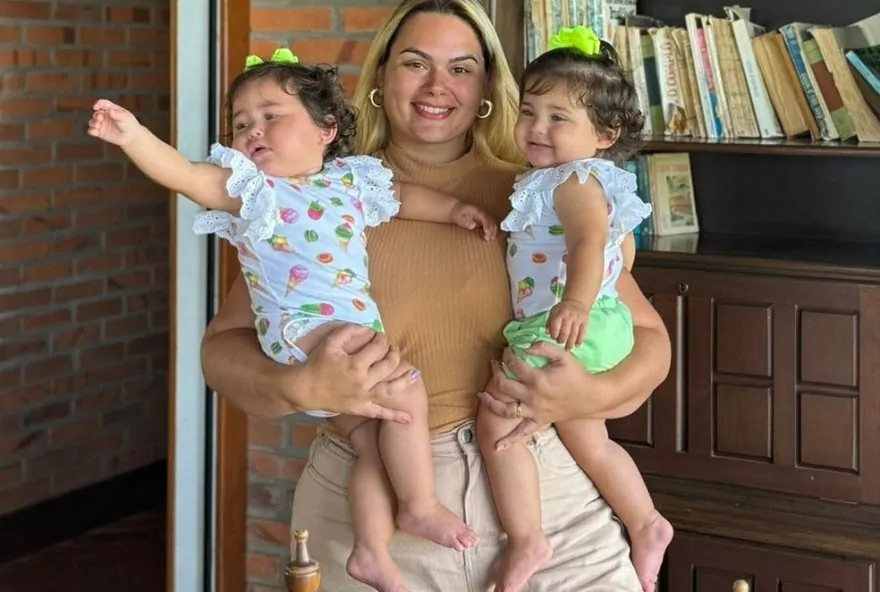 Influenciadora de Itapetininga é mãe de gêmeas idênticas e confundiu as crianças