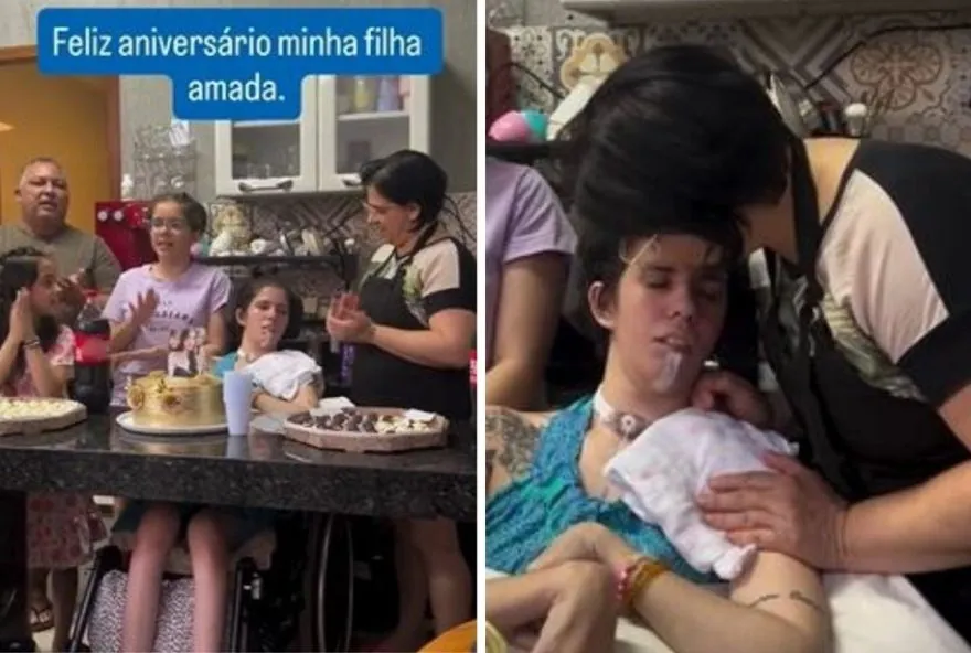 Thaís Medeiros, a jovem que teve reação alérgica grave após cheirar um frasco de pimenta, comemorou seu aniversário ao lado da família. Ela segue uma rotina de tratamentos intensos para sua reabilitação. Na comemoração, a mãe, Adriana Medeiros, responsável por cuidar dela, expressou sua gratidão pela vida da filha e pela força que ela demonstra ao longo dos últimos dois anos.