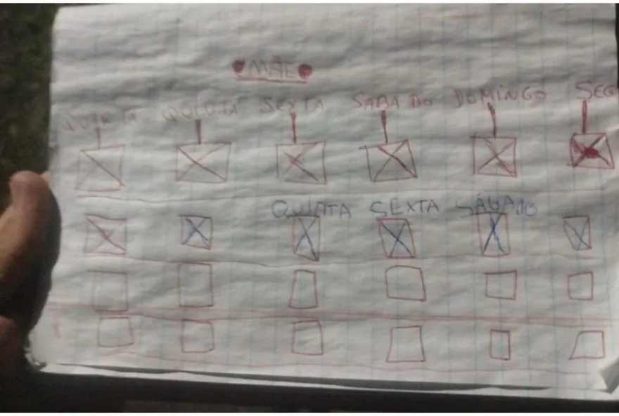 As crianças criaram um “diário” para marcar há quantos dias a mãe tinha saído, e com base nisso investigação policial apontou que a mulher estava fora da casa há pelo menos 12 dias. Neste período, os irmãos teriam se alimentado apenas de biscoitos.