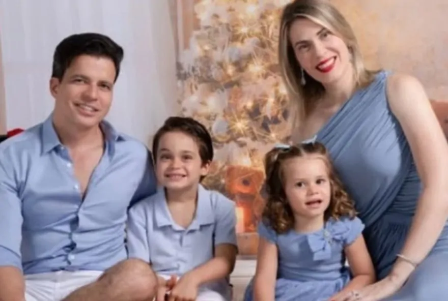Mireylle Fries, o marido Bruno Almeida Souza e os filhos. Família sobreviveu a acidente aéreo — Foto: Reprodução