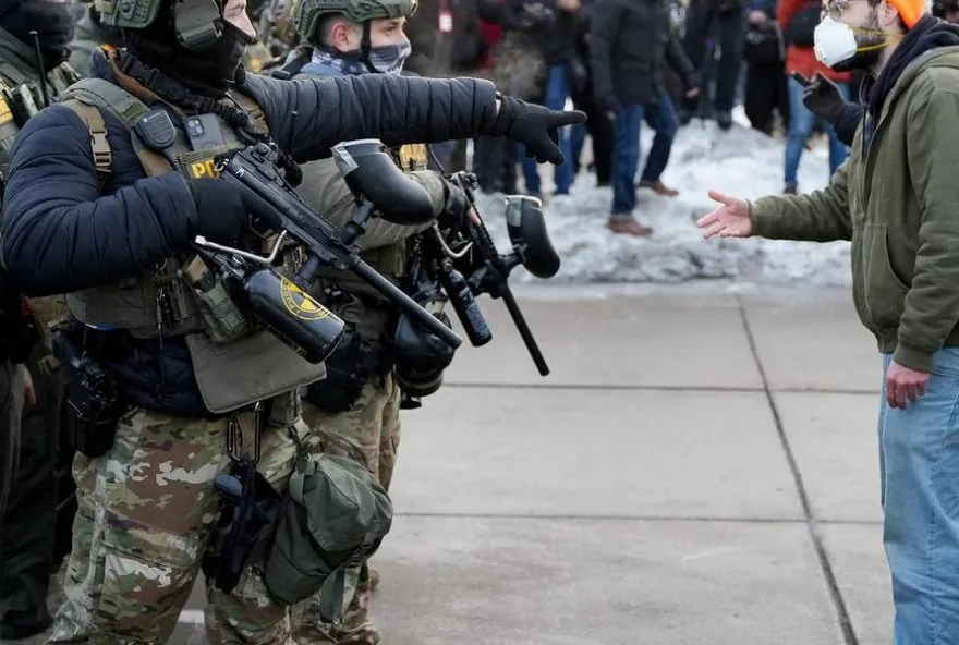 Os manifestantes anti-ICE se reuniram no centro de Minneapolis e pediram para que agentes do ICE e da Patrulha de Fronteiras deixassem a cidade. Rapidamente, dezenas de pessoas avançaram e pressionaram cerca de dez ativistas de extrema direita contra a área externa do centro administrativo municipal. A polícia acompanhou os protestos à distância enquanto os grupos se enfrentavam verbalmente.