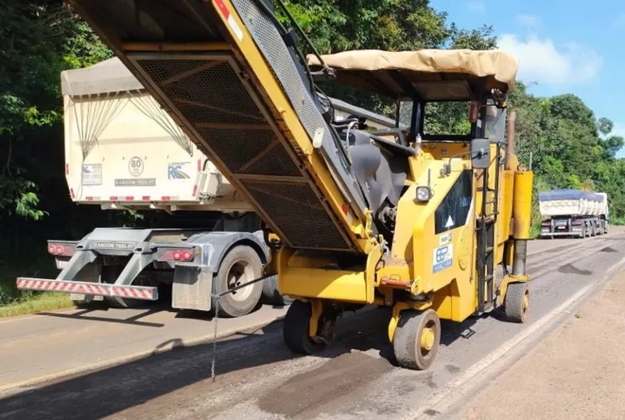 Quarta-feira, do quilômetro 222 ao 230: serviço de fresagem e recomposição do pavimento, em Elói Mendes.