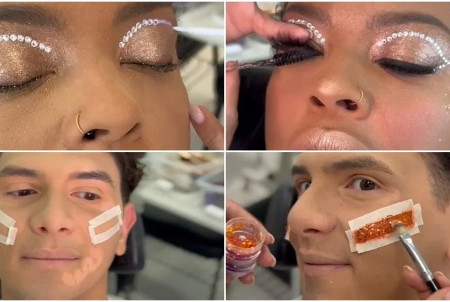Juliane Souza é professora da área de beleza do Serviço Nacional de Aprendizagem Comercial (Senac) de Salto (SP) e selecionou duas opções de maquiagem. Nas makes, ela utiliza bastante glitter, pedrinhas brilhantes e cores vibrantes, que representam o carnaval (confira abaixo).