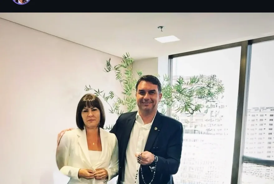 A ex-candidata ao Senado pelo Acre pelo Partido Liberal (PL), Márcia Bittar, compartilhou uma foto ao lado do senador Flávio Bolsonaro (PL-RJ) em suas redes sociais nesta terça-feira (6). Na imagem, ela é vista entregando um terço ao parlamentar, que, segundo a legenda, foi dado a ele como presente durante o encontro. Flávio Bolsonaro, filho do ex-presidente Jair Bolsonaro, tem sido considerado como possível candidato à Presidência nas próximas eleições, mantendo um papel de destaque no campo político conservador. Nas eleições de 2022, Márcia Bittar concorreu a uma vaga no Senado pelo Acre, alcançando a quarta posição, com 41.159 votos, equivalente a 9,99% dos votos válidos na disputa.