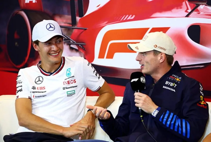 Ele acrescentou ainda que não pretende fazer as pazes com Russell, a quem chamou de falso. Verstappen diz que o britânico é muito educado na frente das câmeras, mas é diferente estar do lado dele, que é difícil de lidar e, portanto, o melhor a fazer é se afastar.
