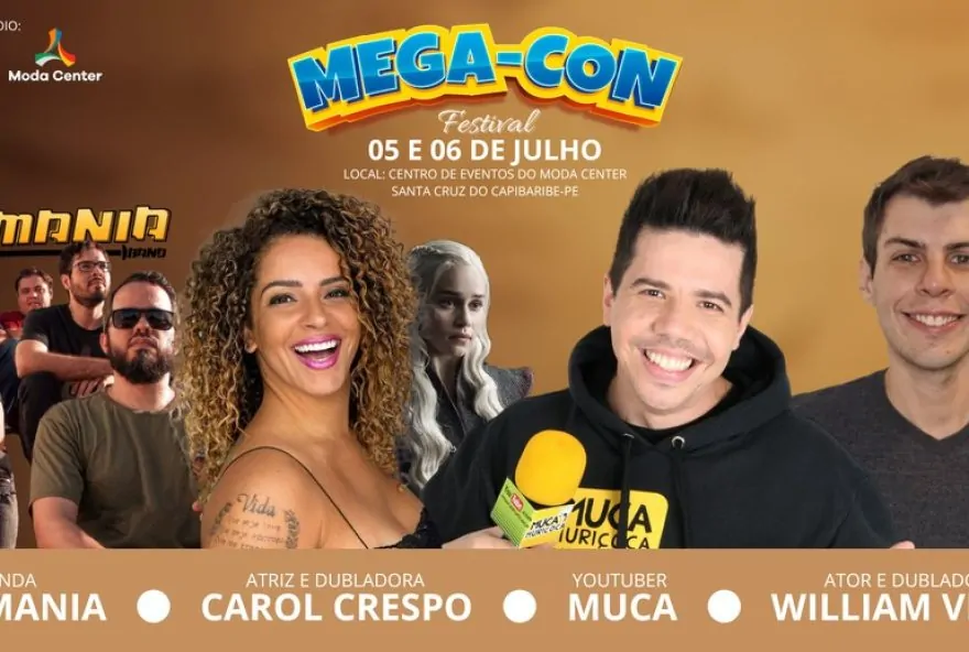 A segunda edição do evento trará uma programação repleta de atrações relacionadas a dublagem, games e cultura pop. Santa Cruz do Capibaribe, cidade localizada no Agreste de Pernambuco, será mais uma vez o cenário ideal para os fãs de cultura geek, pop e gamer. Nos dias 5 e 6 de julho, o Mega-Con Festival retorna à cidade, sendo realizado no Centro de Eventos do Moda Center, às margens da PE-160. O festival conta com o apoio do Moda Center e do Grupo Asa Branca, filial da Rede Globo.