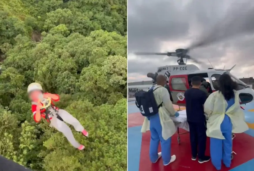Em uma ação emocionante, uma menina de seis anos foi resgatada por um helicóptero da Polícia Militar em uma cachoeira em Cubatão, na Baixada Santista. Segundo informações do capitão da PM, a criança estava com queimaduras no rosto, mãos e pés, em decorrência de um acidente envolvendo gasolina. A dinâmica do acidente não foi detalhada, mas a vítima estava acompanhada de seus pais no local.