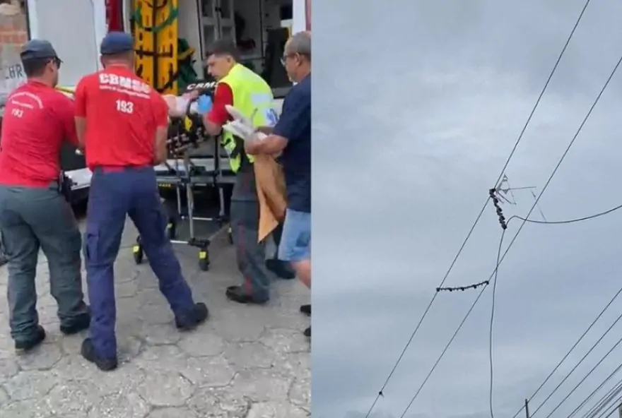 Menino de 8 anos leva choque elétrico após linha de pipa romper fio de alta tensão em SC