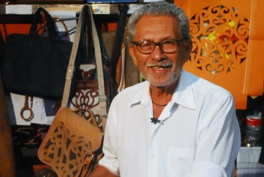 Espedito Seleiro, 83 anos, é símbolo do artesanato no Ceará, após se firmar desenvolvendo um estilo particular de aliar o couro sertanejo às cores e formatos do vestuário.