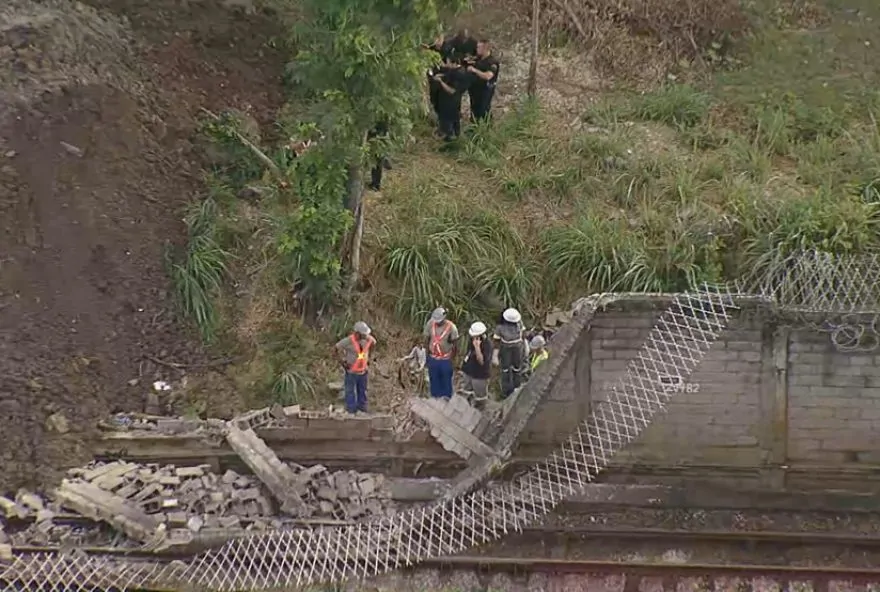 Muro desaba sobre trilhos da Linha 2 do metrô do Rio e sete estações são fechadas — Foto: Reprodução/ TV Globo