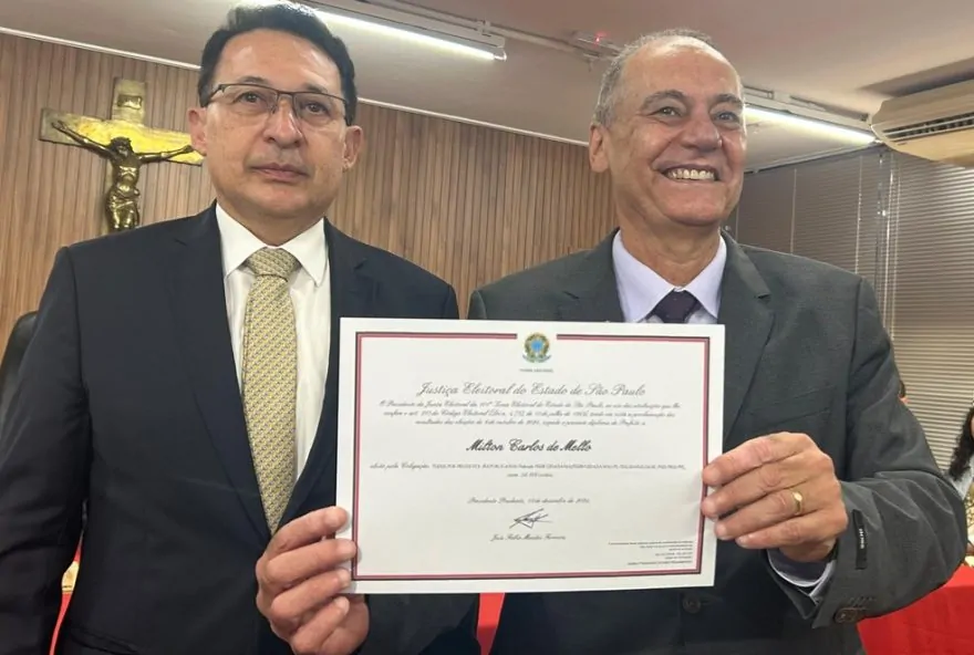 Milton Carlos de Mello ‘Tupã’ recebe diplomação para assumir o cargo de prefeito de Presidente Prudente (SP) em 2025 — Foto: Bruna Bonfim/de